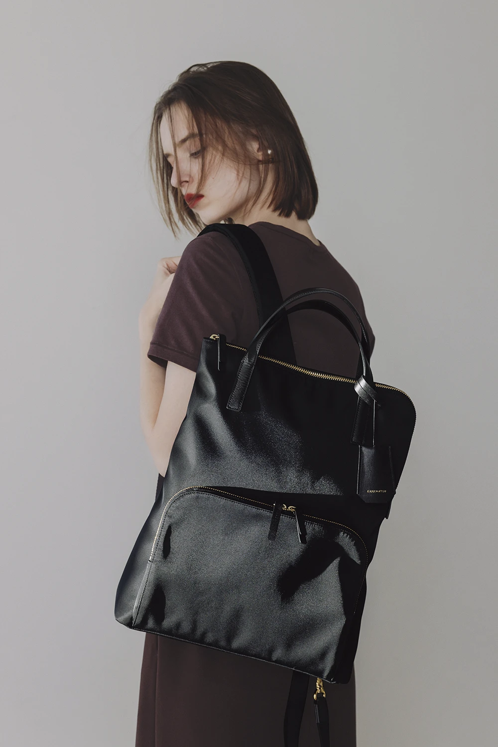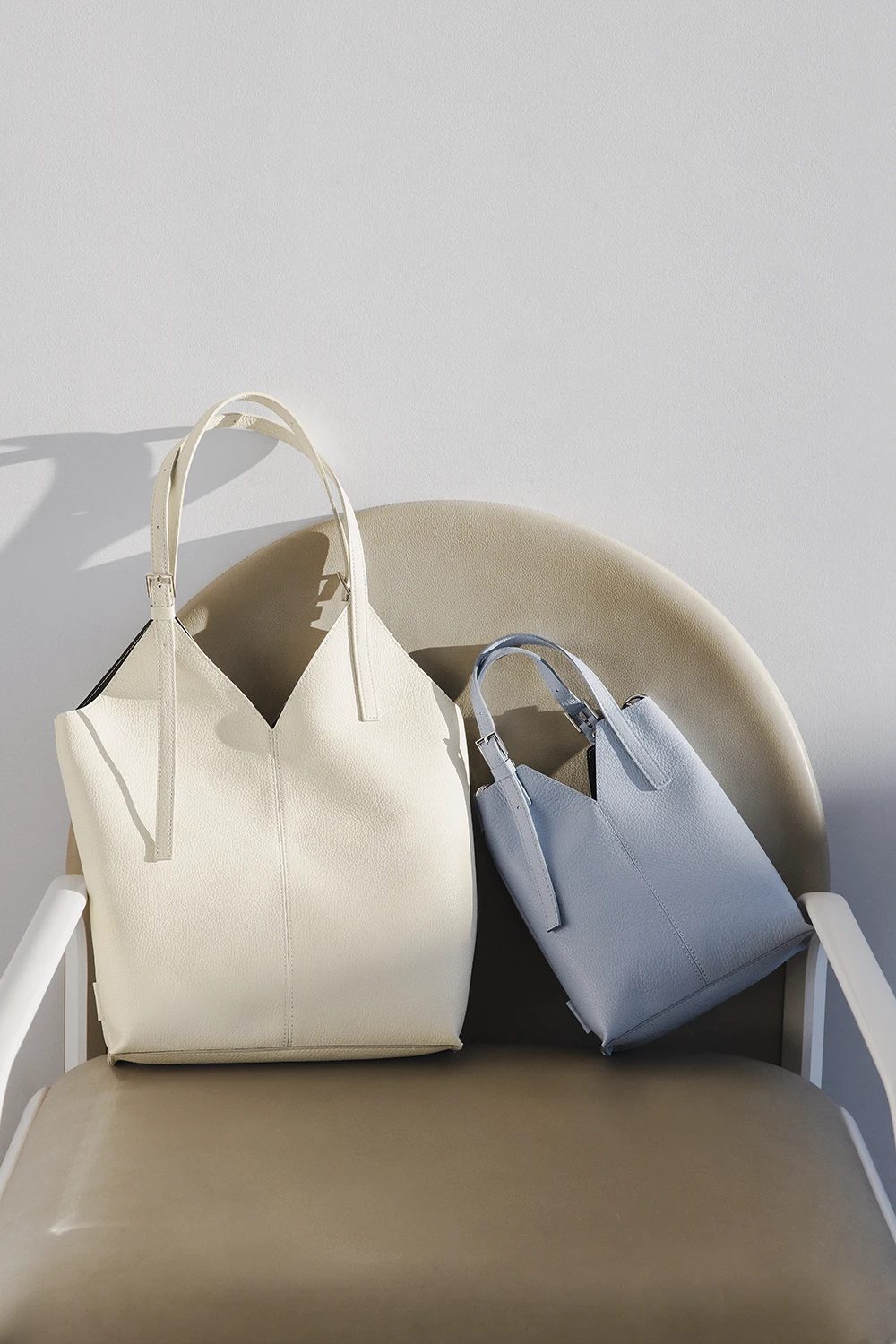 イタリア産レザーの柔らかな質感にひと匙のシャープさを添えるVカットバッグ。スモールはショルダーストラップ付きの2way仕様です。