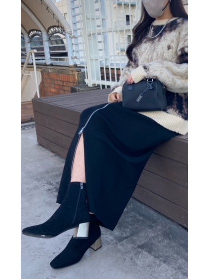 ボリュームのある厚底と細身のニットシャフトのバランスがかわいい晴雨兼用ショートブーツ。