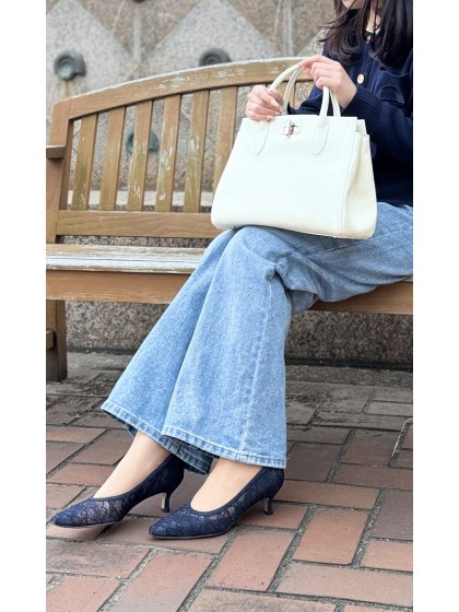 “抜け感“が大事な今季、シアー素材に水玉のように散らしたラインストーンが大人可愛い、バックベルトパンプス。