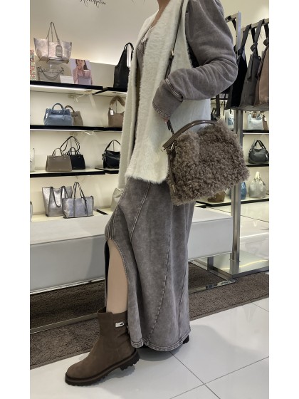 ボリュームのある厚底と細身のニットシャフトのバランスがかわいい晴雨兼用ショートブーツ。