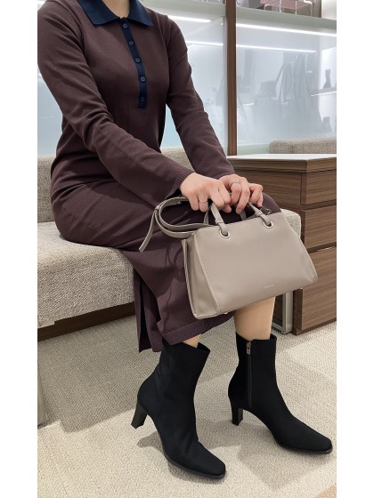 ボリュームのある厚底と細身のニットシャフトのバランスがかわいい晴雨兼用ショートブーツ。